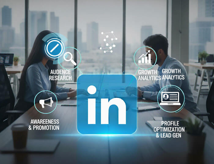 LinkedIn marketing makes use of the professional network LinkedIn to reach specific professional audiences, create quality leads, and establish brand credibility—all of which contribute to quantifiable company growth.